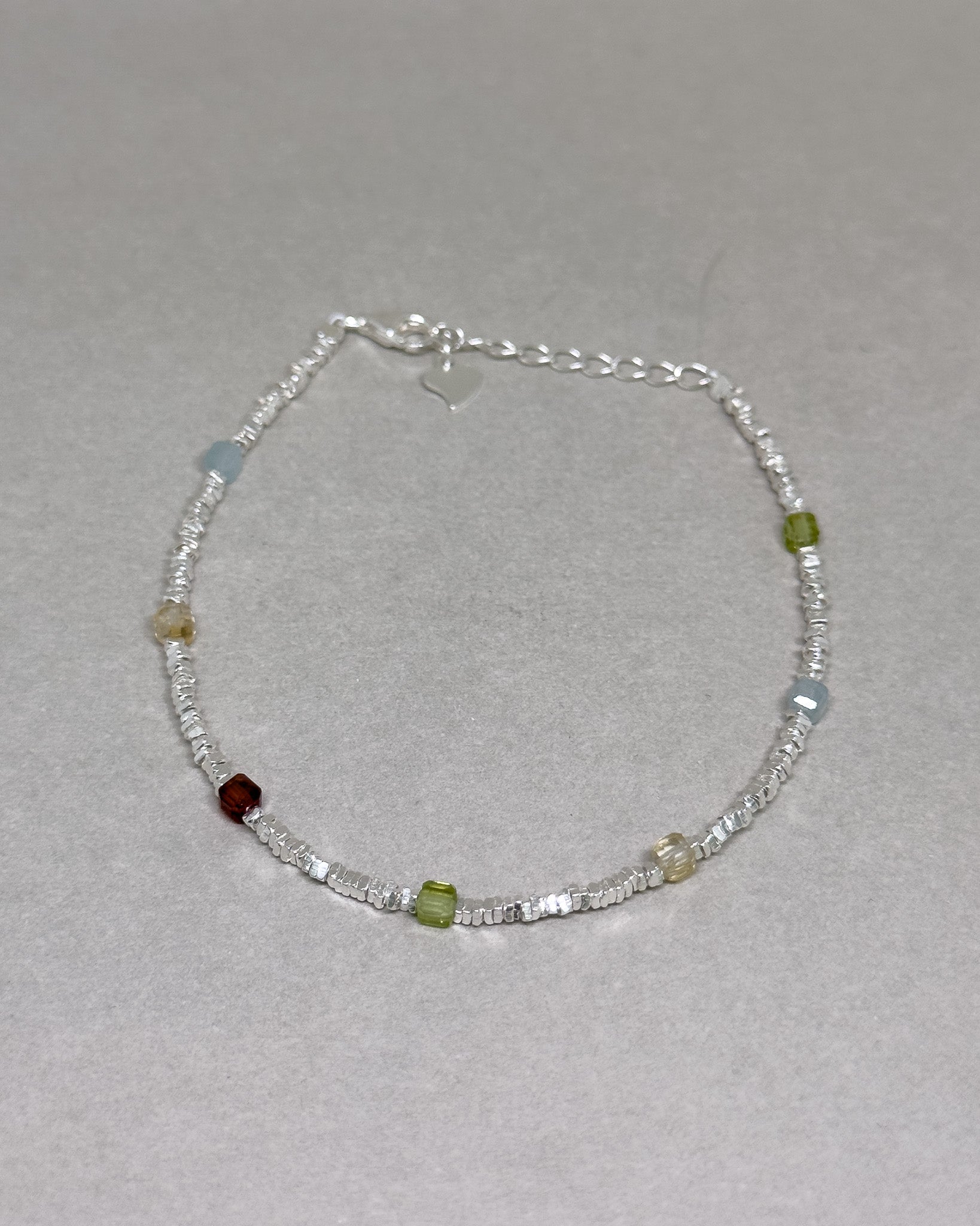 Aria is the perfect addition to any jewellery collection. Made from solid sterling silver with white gold plating, it offers a simple yet elegant touch to any outfit. The multicolour beads add a fun pop of colour, making it a versatile and stackable piece for everyday wear.