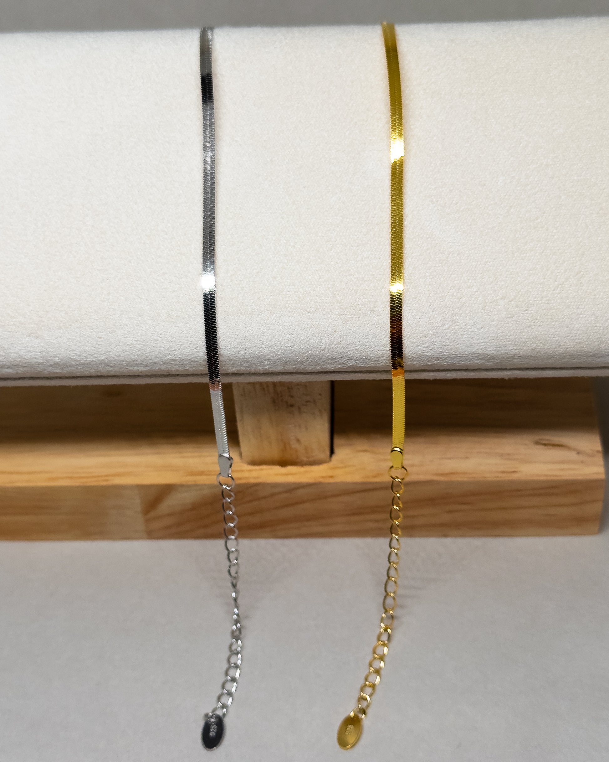 The Chayn Bracelet is expertly crafted from sterling silver, featuring a delicate 0.2cm thick chain. Its smooth, flexible design ensures a comfortable fit, making it a versatile accessory suitable for both everyday wear and special occasions.