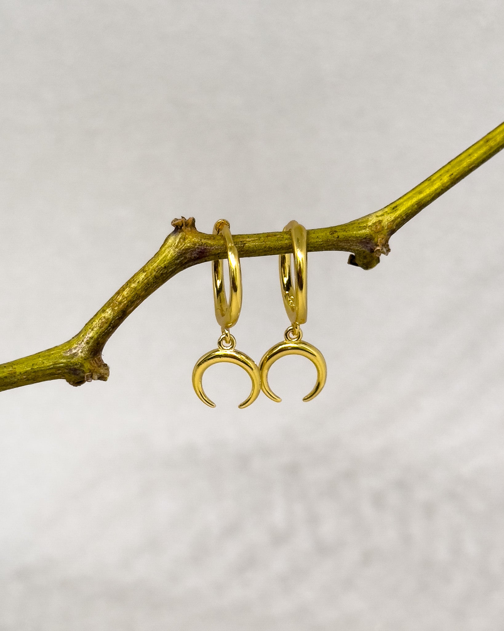 These Mulan Earrings feature a half moon drop design and are available in both gold and silver. With their simple, everyday style, they add a touch of elegance to any outfit.