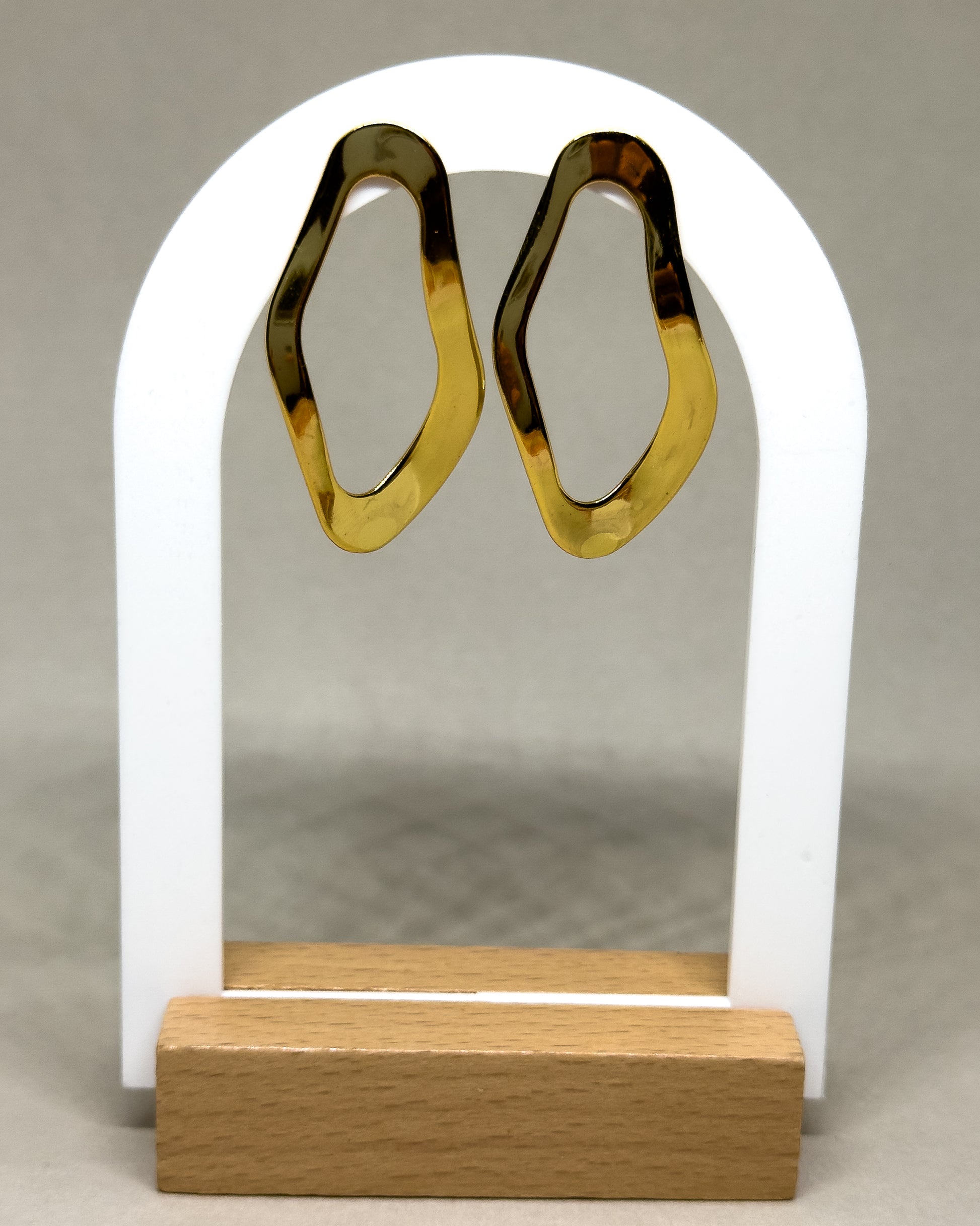 Asymmetrical droplet shape with a high-quality gold-plated finish. Perfect for adding a refined statement to your jewellery collection.