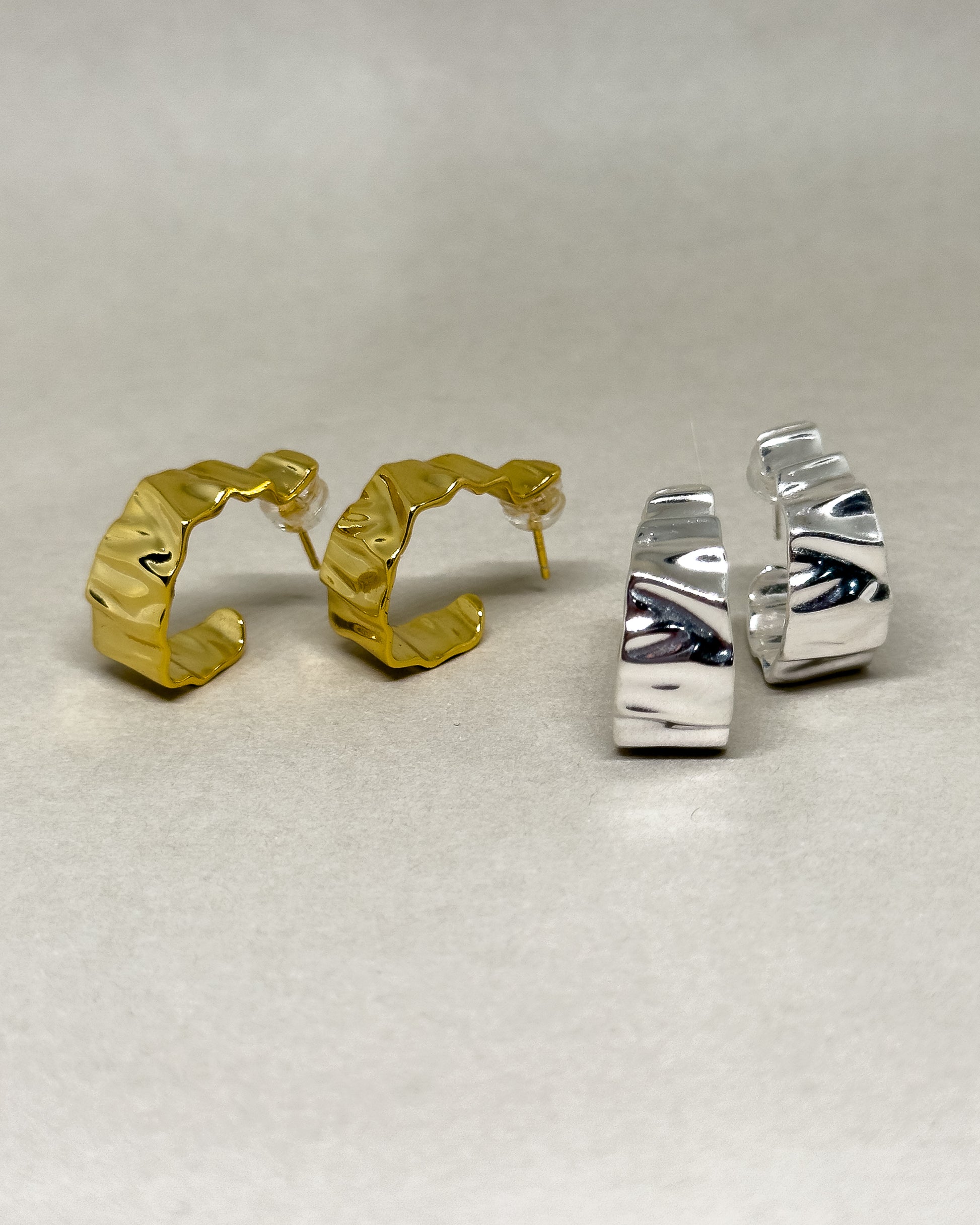 The Ivy Hoop Earrings feature a thick, textured design available in elegant gold and silver variants. Ideal for those who appreciate refined jewellery with a bold presence, they seamlessly complement both casual and formal styles.