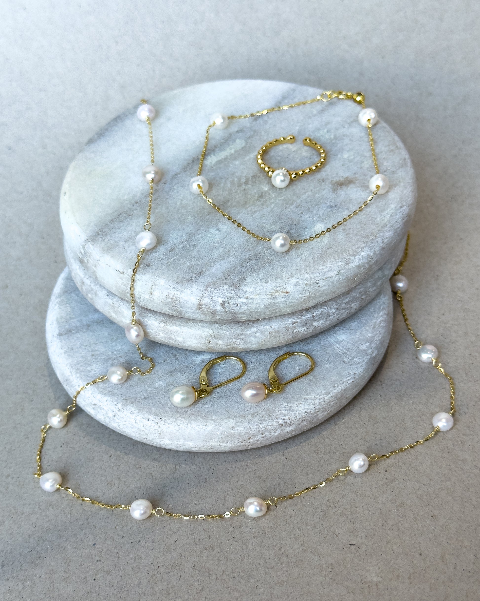 - Solid Sterling silver and 14K Gold plating, Freshwater pearls