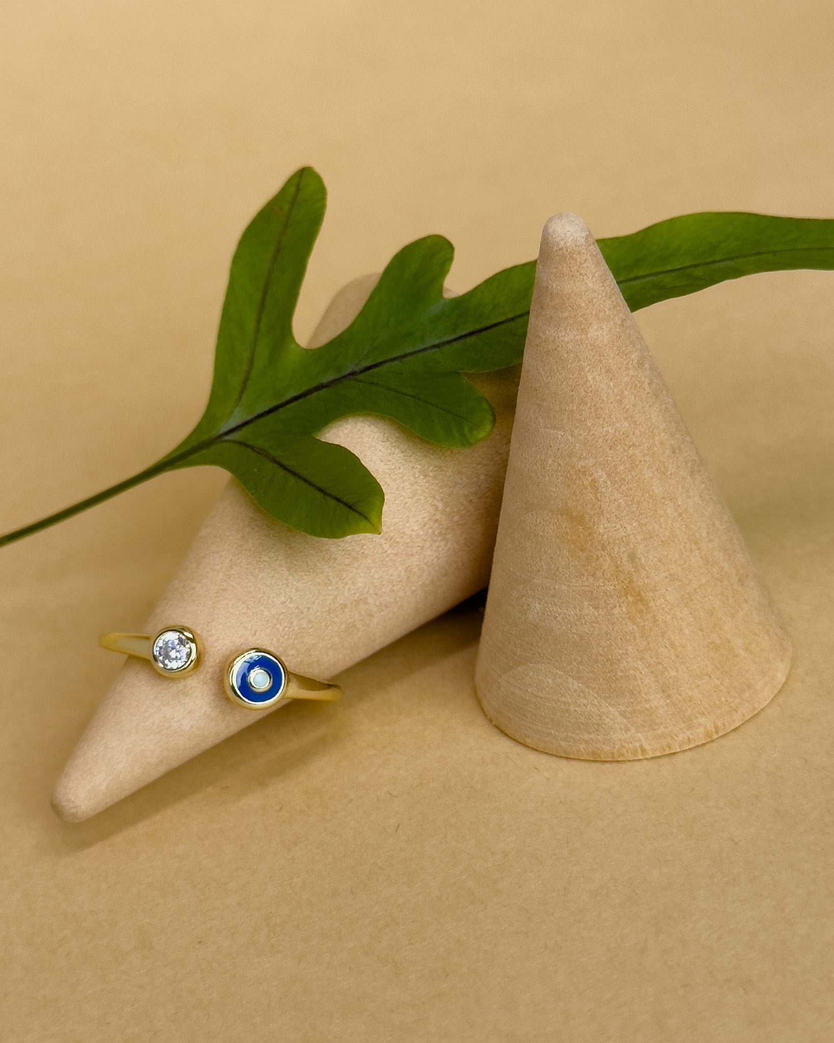 Features an open design adorned with a zircon accent and an evil eye symbol. Plated in 14K gold, this ring is a simple yet stylish addition to any jewellery collection.