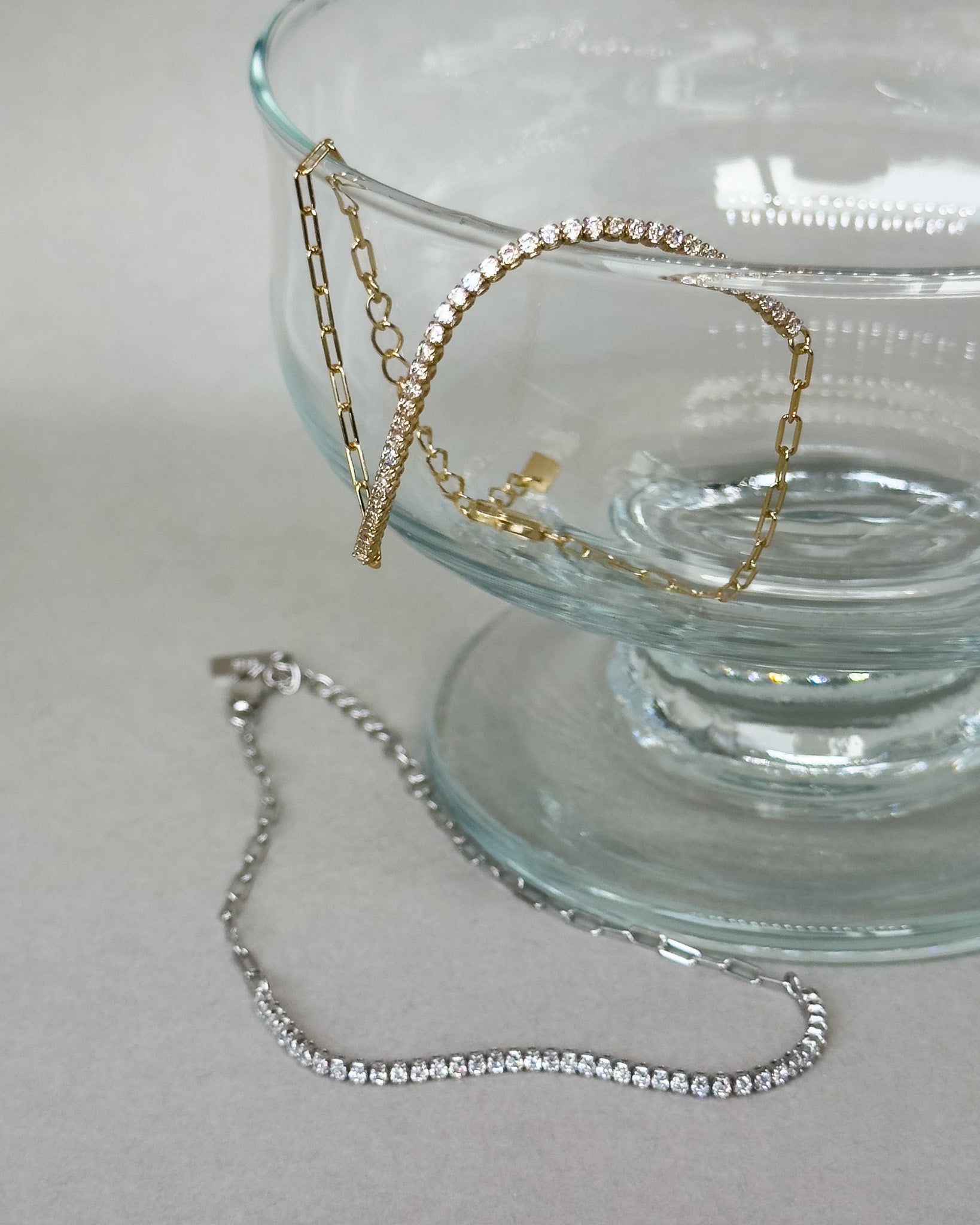 The Serena Tennis Bracelet is the perfect combination of luxury and affordability. With a 2mm chain adorned with high quality zircons, it comes in both gold and silver variants.